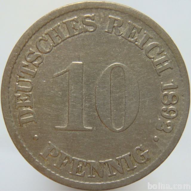 Nemčija 10 Pfennig 1892 G VF/XF 'key date'