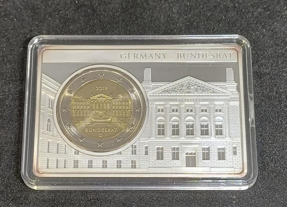 Nemčija, spominski 2 € kovanec letnik 2019 , BUNDESRAT inkonponiran v posrebreni ploscici znotraj kapsule!