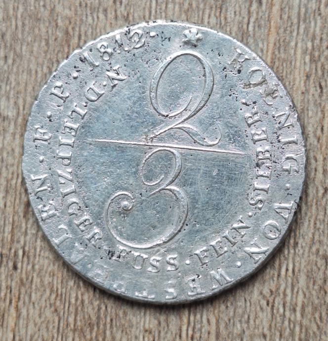 Prodam lepo ohranjen srebrnik Napoleon Bonaparte 2/3 thaler 1812 ag.994/1000/13g/32mm/original.