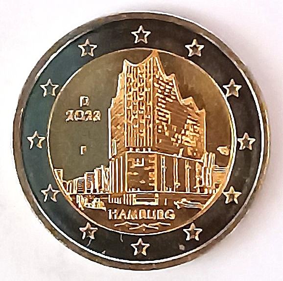 2 € spominski kovanec 2023, Hamburg, UNC, kovnica F, G, J