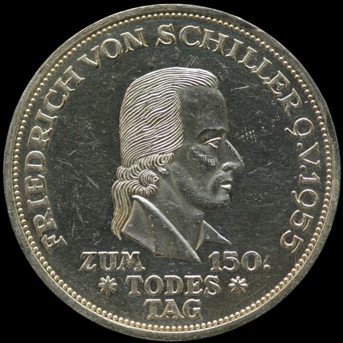 Nemčija 5 Mark 1955 G Friedrich von Schiller PROOF redek - Srebro
