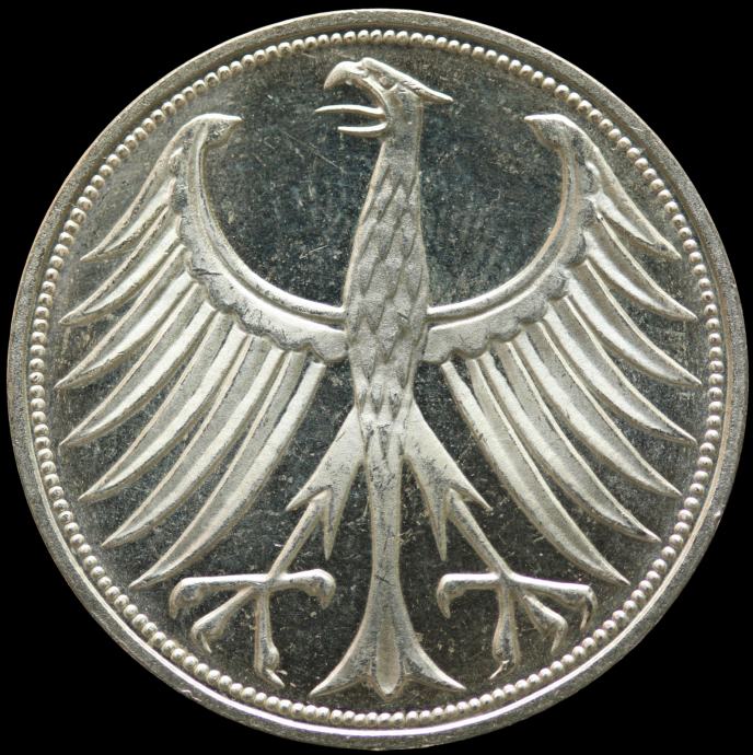Nemčija 5 MARK 1966 F PROOF - Srebro