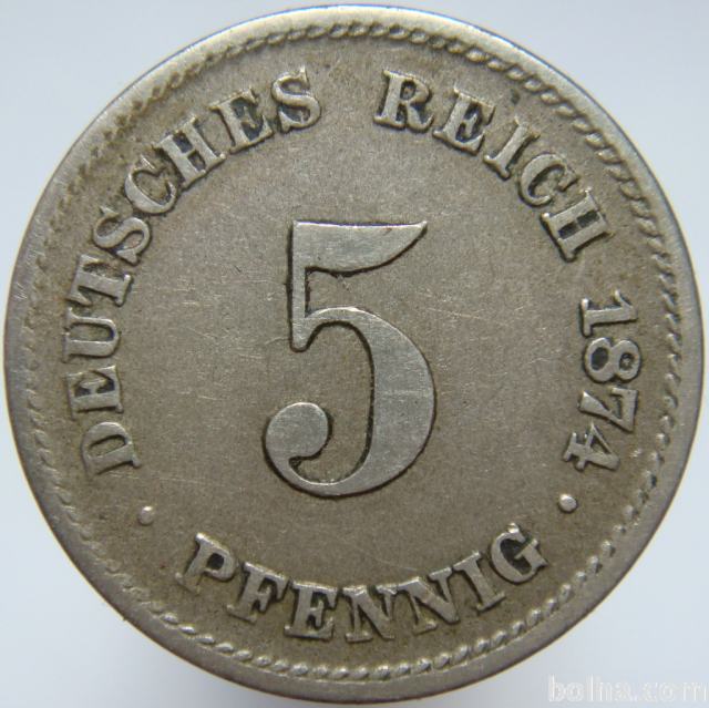 Nemčija 5 Pfennig 1874 E XF/UNC