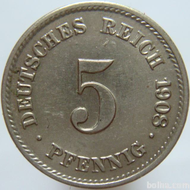 Nemčija 5 Pfennig 1908 G UNC