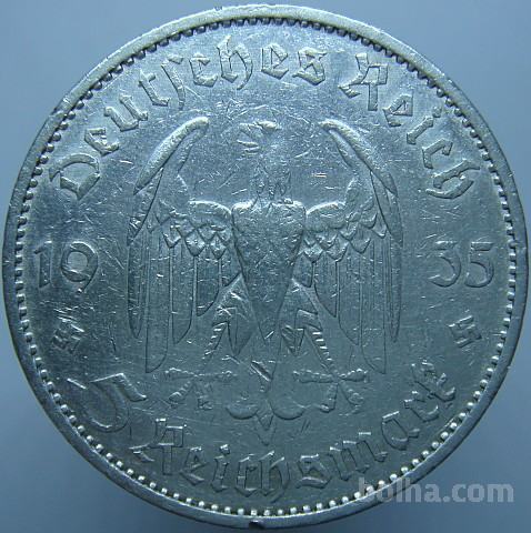 Nemčija 5 Mark 1935 A VF/XF b - Srebro