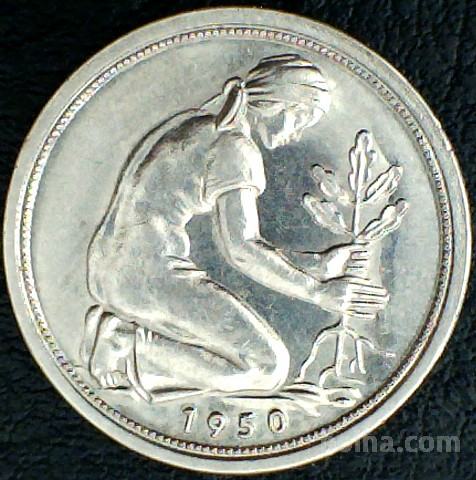 Nemčija 50 Pfennig 1950 J XF/UNC