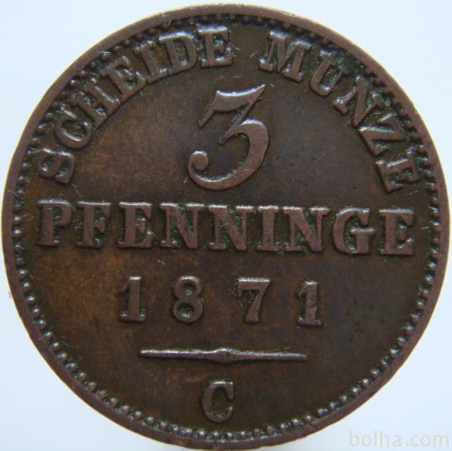 Nemčija PRUSSIA 3 Pfenninge 1871 C XF/UNC