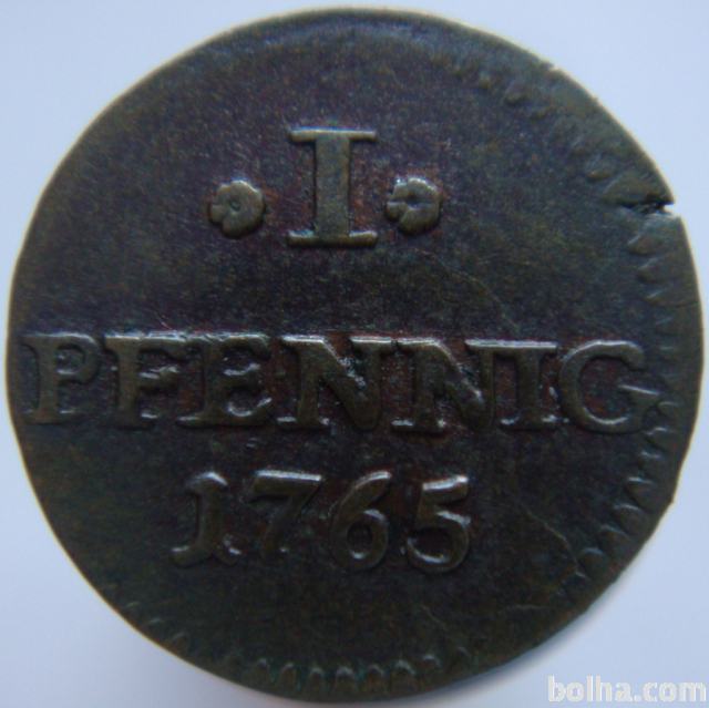 Nemčija Saxony Albertine 1 Pfennig 1765 C XF redkejši - Bilon