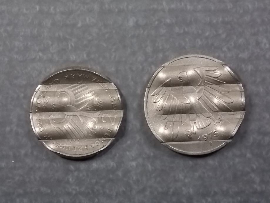 Komplet kovancev za 2 in 5 mark, rešenih iz mlina ob uvedbi evra. Namenjena sta bila v topilnico, vendar sta ohranjena za zbiratelje. Cena je za komplet. Na zahodu dosegajo taki primerki zelo visoke cene.