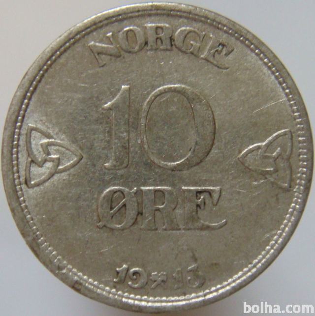 Norveška 10 Ore 1913 XF/UNC - Srebro