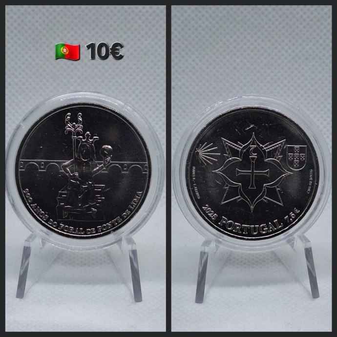 Portugalska 7.5 euro 2025 Ponte de Lima charter, v kapsuli je 10.3€