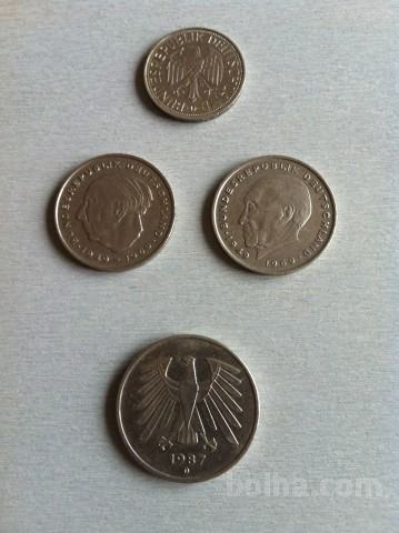 2 kom po 2 nemški marki l. 1971: C z različno glavo; cena: 19 eur po kom (en kovanec za 2 nemški marki, ki je viden na fotografiji v tem oglasu na levi strani s Theodorjem Heussom ni več naprodaj, drugi s Konradom Adenauerjem na desni pa je še na voljo).