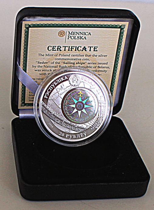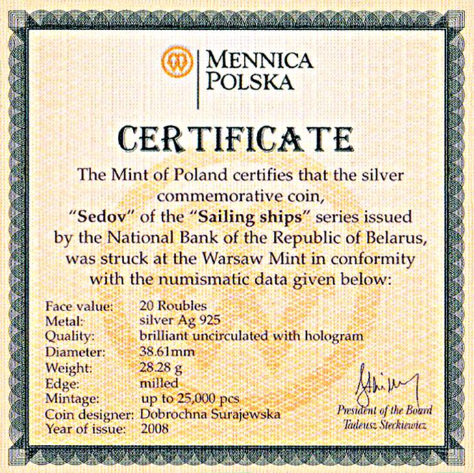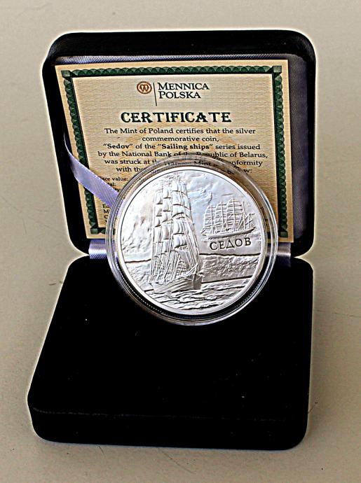 Srebrnik se nahaja v plastični kapsuli, ta pa v kovinskem etuiju, oblečenem z imitacijo usnja črne barve. Certifikat pritrjuje svilnati trak. Notranjost etuija je iz dveh vrst blaga in barv. Ležišče kovanca je v imitaciji črnega žameta, pokrov v imitaciji bele svile.