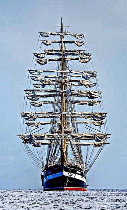 Višina treh glavnih jamborov: 54 m, je skoraj tolikšna kot nebotičnik na Belvederju v Kopru