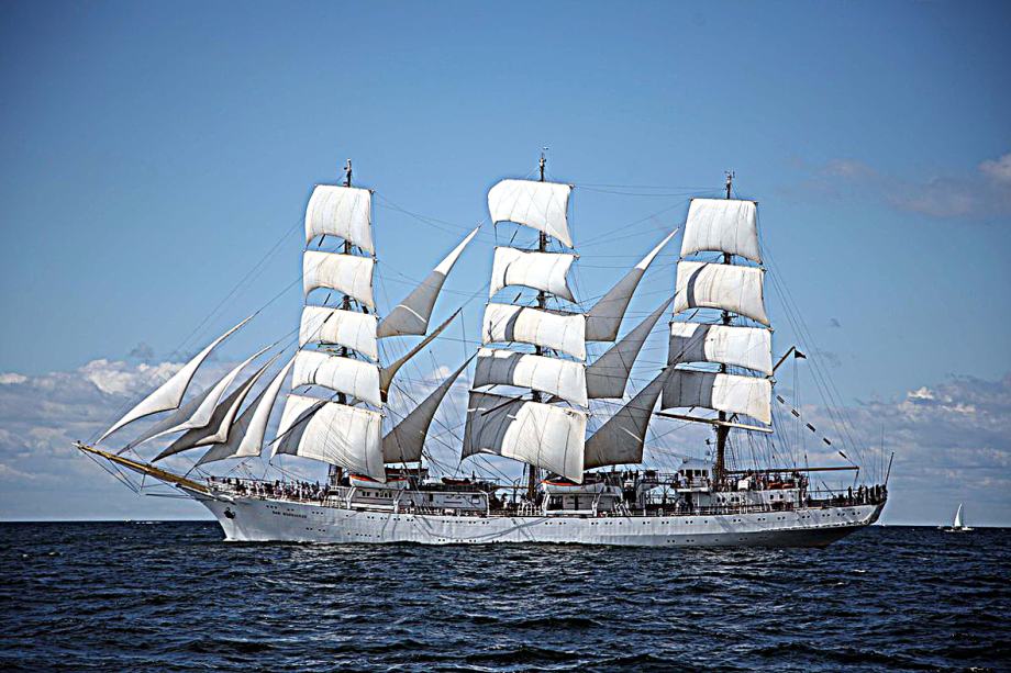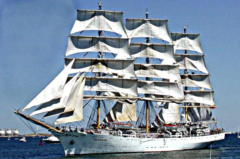 Dolžina ladje je 91 metrov in spada med velike jadrnice