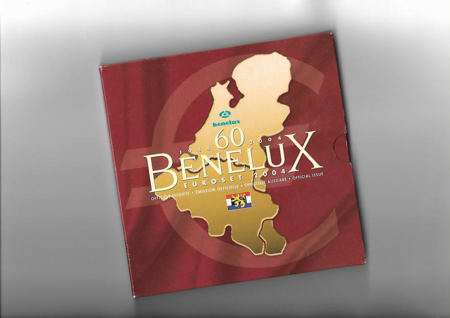 V originalnem bančnem ovitku so kovanci treh držav Beneluxa. Vsi kovanci so iz leta 2004, dodana je spominska medalja ob šestdesetletnici