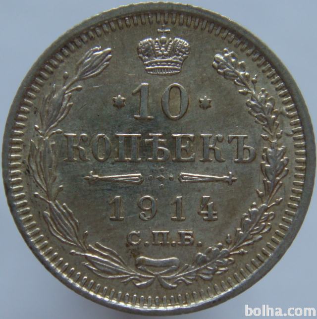 Rusija 10 Kopeks 1914 UNC - Srebro