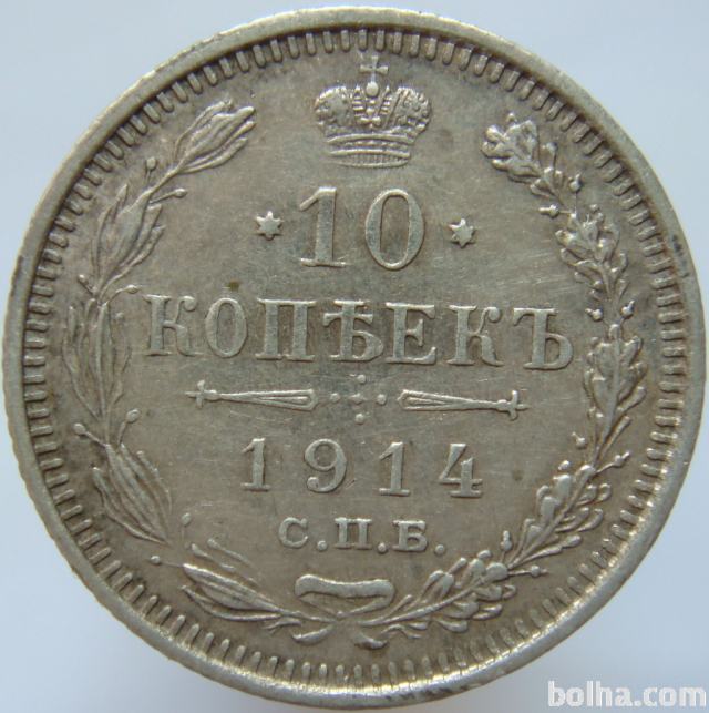 Rusija 10 Kopeks 1914 XF/UNC - Srebro