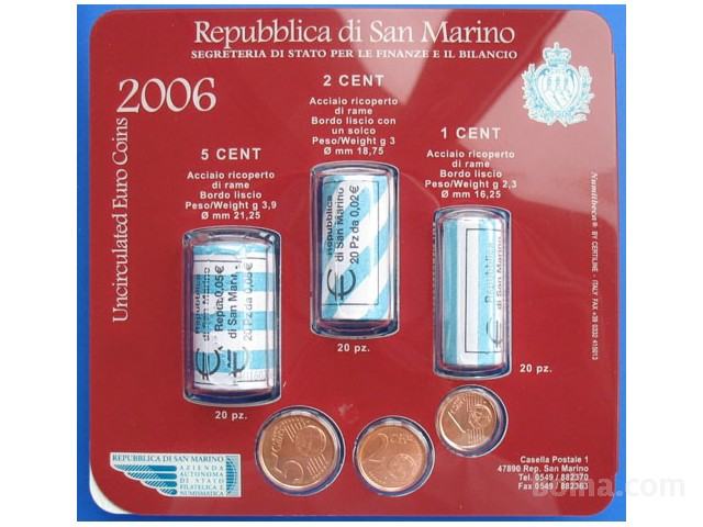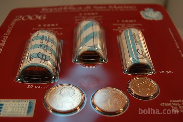 * rolice(po 20 kovancev) za 1 cent, 2 centa in 5 centov