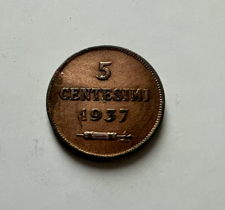 5 centesimi San Marino 1937, redek.