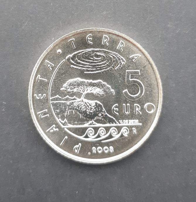 Prodam kovanec srebrnik San Marino 5 eur UNC 2008 v kapsuli-Mednarodno leto planeta Zemlja.