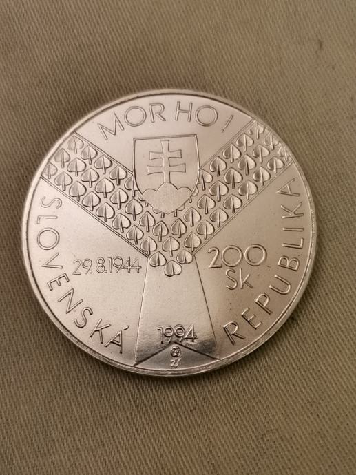 Slovaška 200 kron SK 1994 50 let D - DAY srebrnik STGL UNC kapsula.