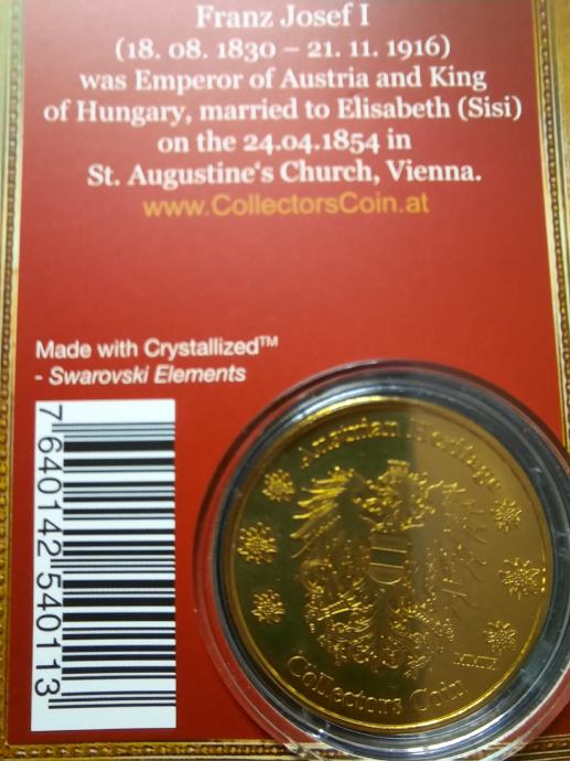 Prodaja se spominski kovanec z tremi kamenčki (Swarovski elements).