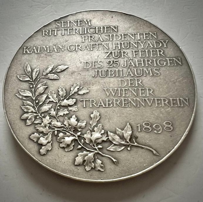 Avstroogrska konjeniška medalja, izdana ob 25. obletnici ustanovitve dunajskega kasaškega društva.