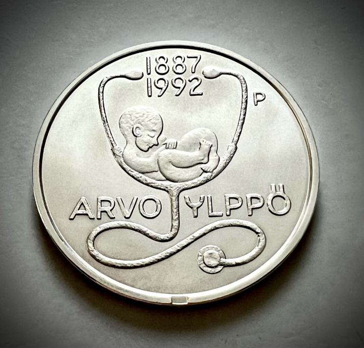 Srebrnik izdan za 125. obletnico rojstva zdravnika pediatra Arvo Ylppö, kateri je znatno prispeval k zniževanju smrtnosti otrok. Na srebrniku se nahaja napis v različnih barvah, ki v finščini pomeni hvala.