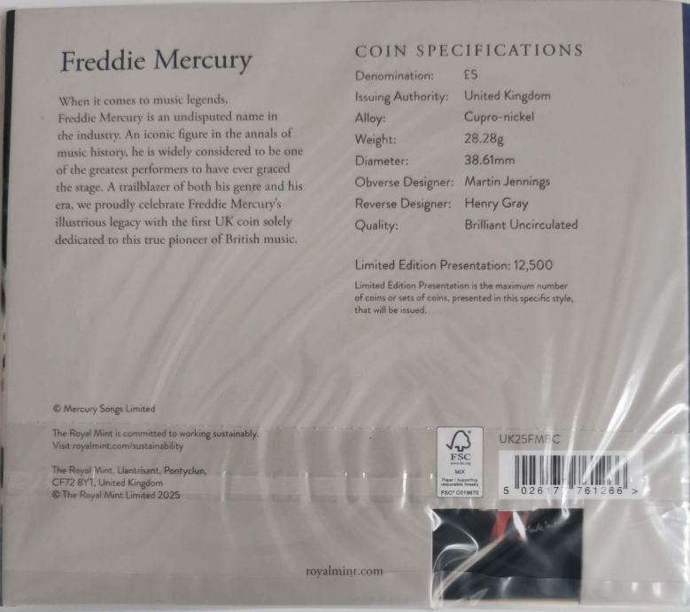 Srebrnik, 5 funtov, unc, izdano 12500 kom., original embalaža - zapakirano.