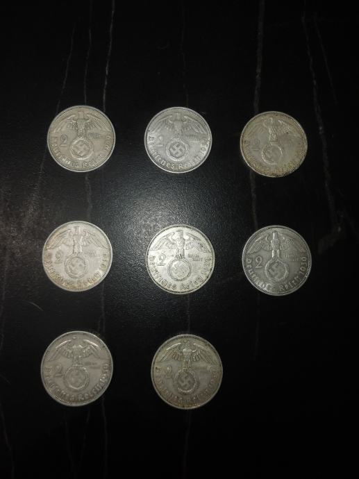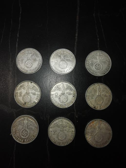 Prodam zbirko srebrnikov - 2 reich marke, so v dobrem stanju, nekateri odlični,