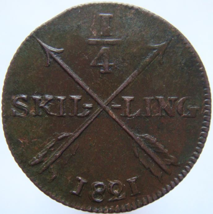 Švedska 1/4 Skilling 1821 VF/XF podvoojenost
