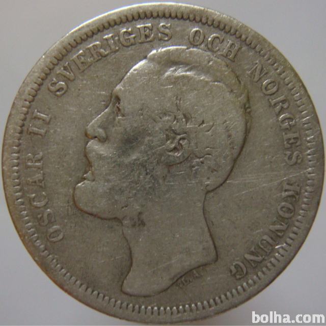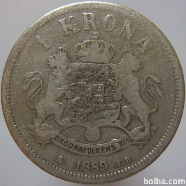 Švedska 1 Krona 1889 F/VF koder - Srebro