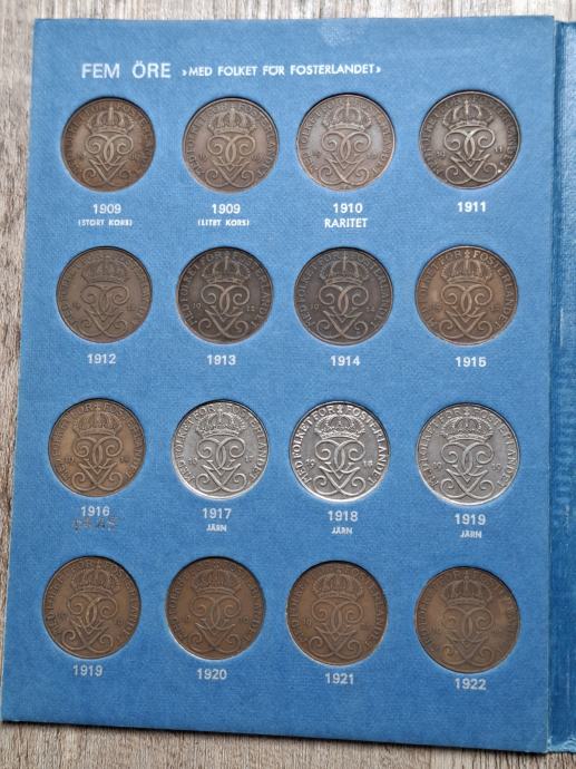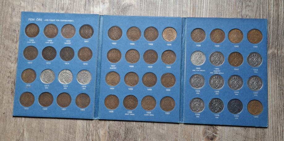 komplet kovancev 5 ore od leta 1909 do 1950 (48 kovancev) letnik 1910 in 1927 sta zelo redka,cena za komplet.