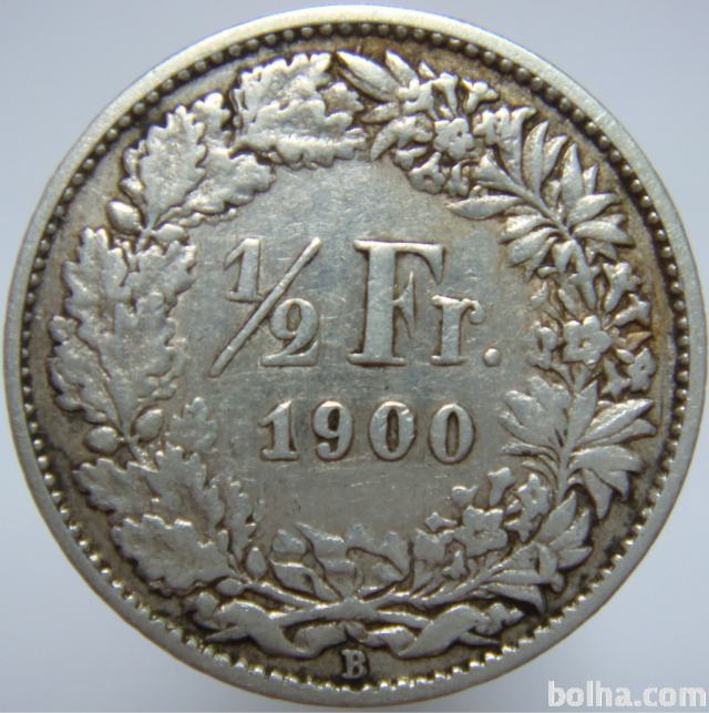 Švica 1/2 Franc 1900 VF/XF - Srebro