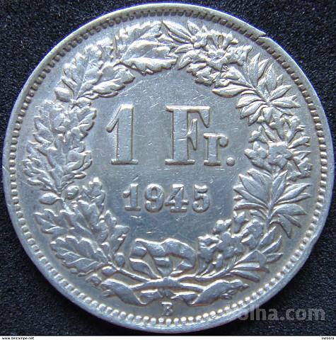 Švica 1 Franc 1945 XF a - Srebro