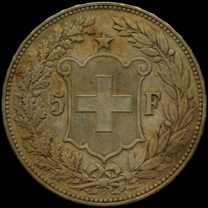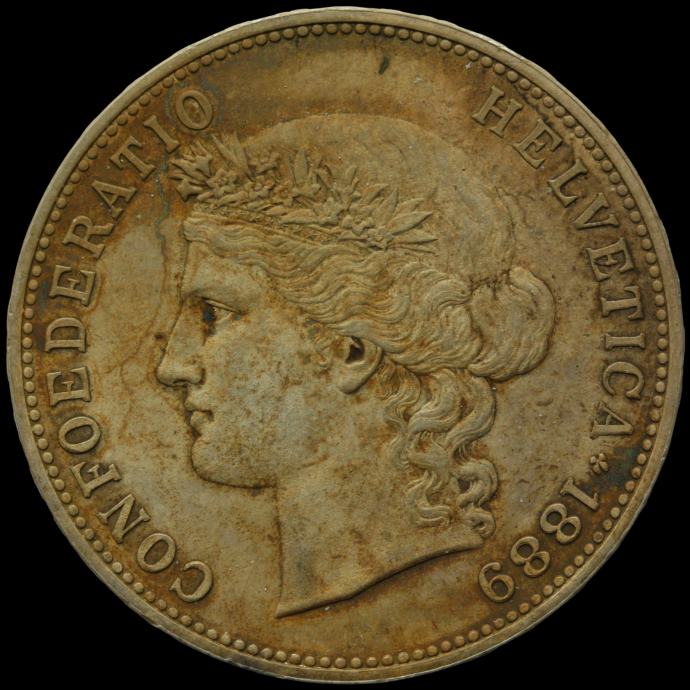 LaZooRo: Švica 5 Francs 1889 B Specimen zelo redek - Srebro