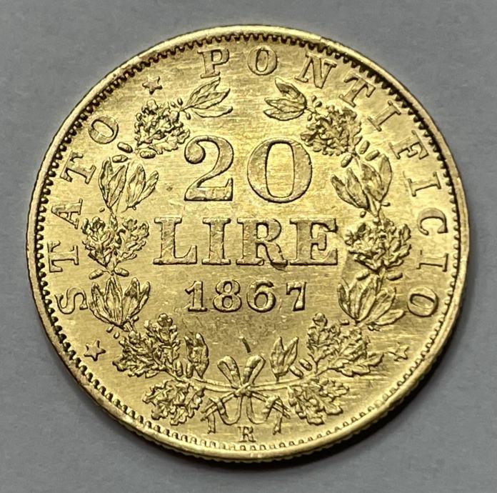 20 Lire 1867. – PIVS IX PON. – MAX.A.XXIIR