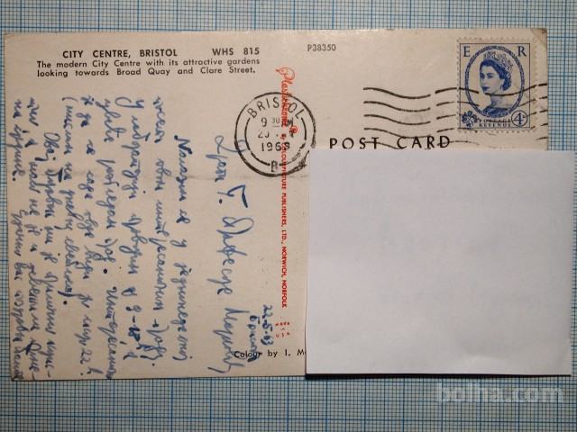 Razglednica BRISTOL,City center, potovala 1968, z znamko.