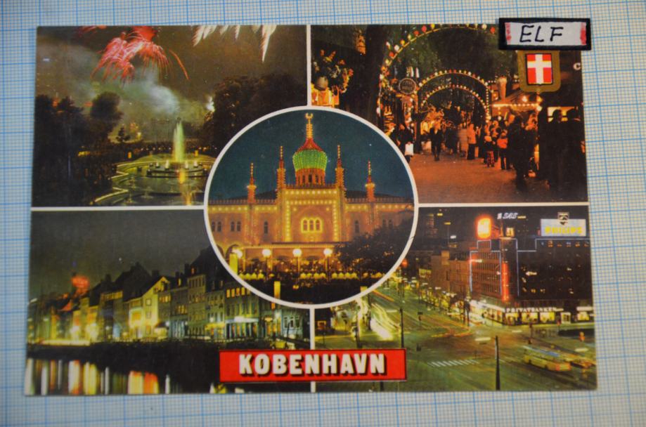 Razglednica KOPENHAGEN ponoči, potovala 1986.
