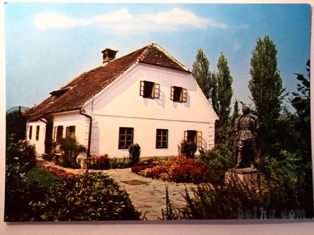 Razglednica KUMROVEC, rojstna hiša M. TITA, potovala 1976, z znamko.