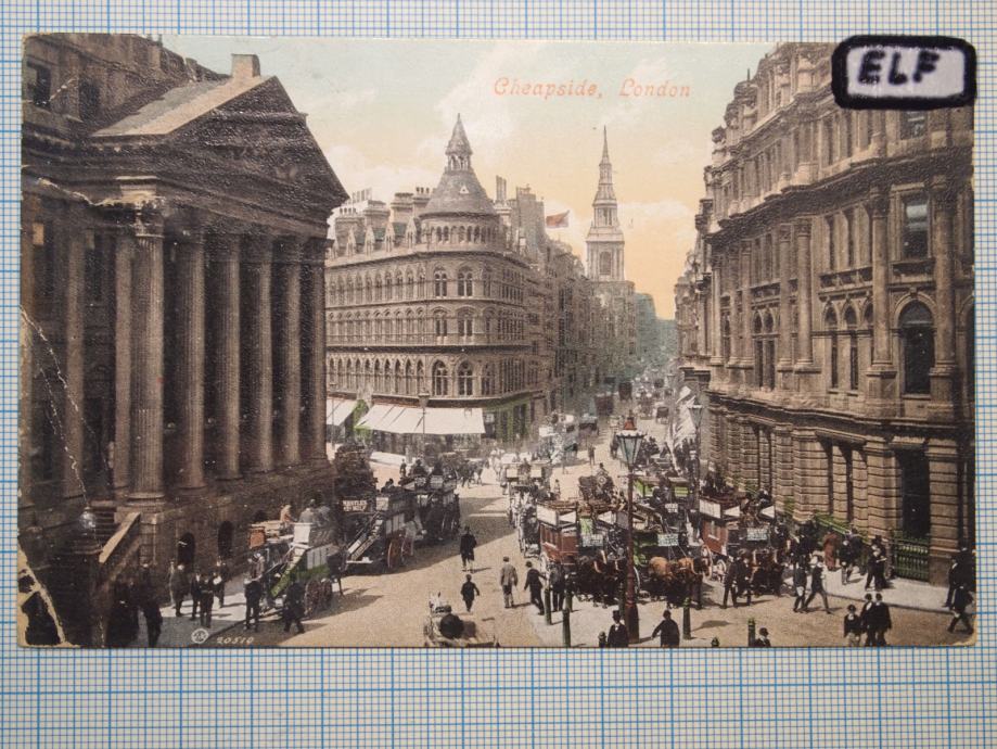 Razglednica LONDON, ulica CHEAPSIDE, potovala, datum slabo viden.