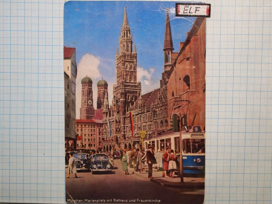 Razglednica MINHEN, mestna hiša s katedralo, potovala - z znamko - datum ni razviden.