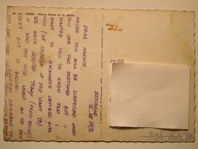 Razglednica PARIZ, ( akvarel ) posvečena cerkev Notre Dame, potovala 1974, znamka odstranjena.