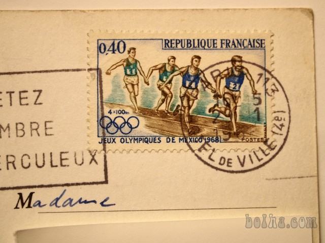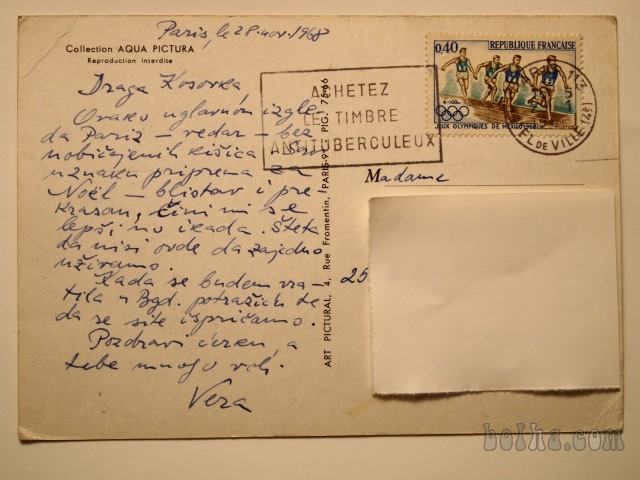 Razglednica PARIZ, ( akvarel ) potovala 1968, z znamko.