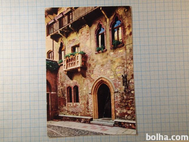 Razglednica VERONA, hiša kjer je prebivala JULIJA - balkon. Ni potovala. Verona, eno veliko mesto regije Veneto, kot pravijo - najlepše po Benetkah. Spletna stran številnih znamenitosti, muzejev in stavb s čudovito arhitekturo. Verona pa je znana predvsem za scenarij ene najbolj znanih in najbolj tragičnih ljubezni v zgodovini - Romeo in Juliet.