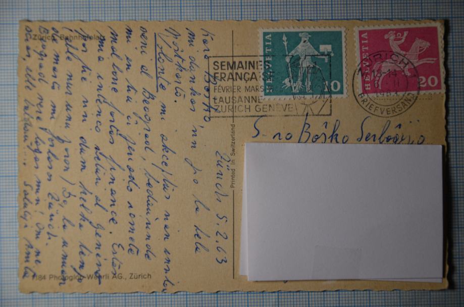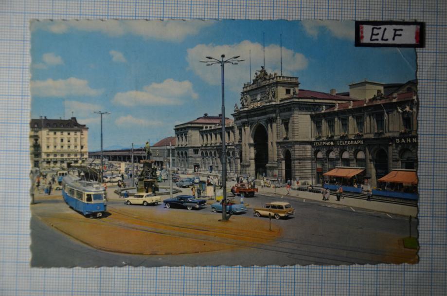 Razglednica ZURICH, trg železniške postaje, potovala 1963.