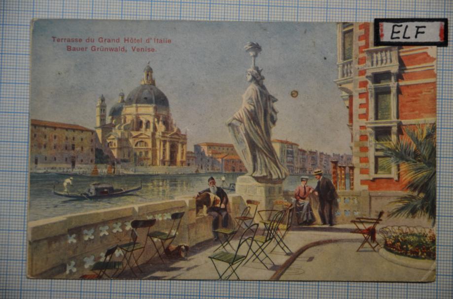 Razglednica VENEZIA, BENETKE, TERASA GRAND HOTEL D'ITALIE, BAUER GRÜNWALD, ni potovala.