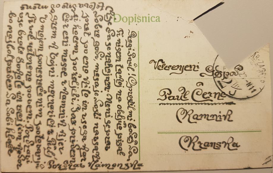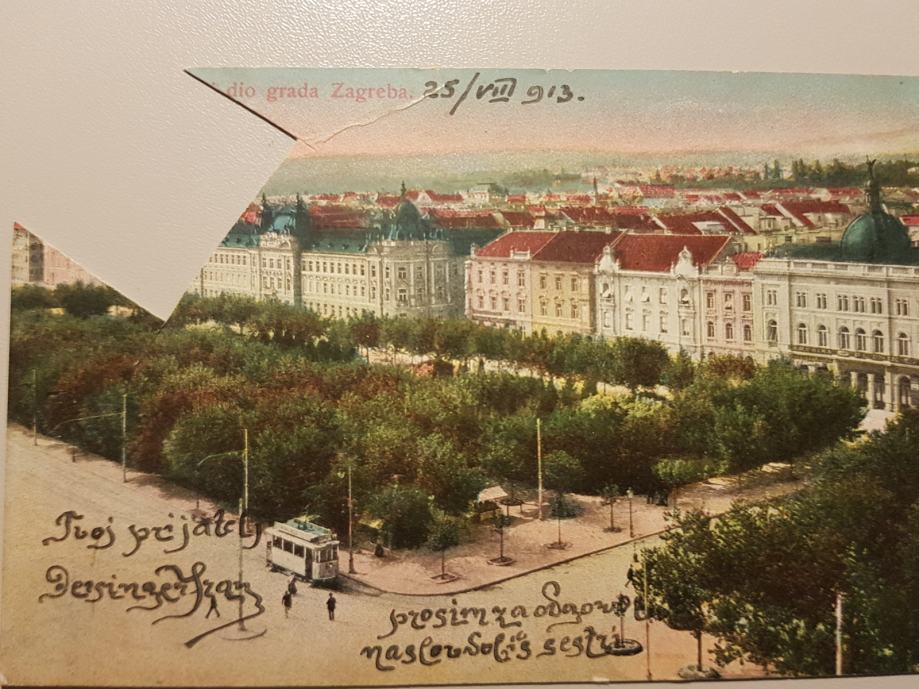 RAZGLEDNICA ZAGREBA IZ LETA 1913 Z UNIKATNO PISAVO,ŽAL JE ZNAMKA IZREZANA, INFO 041 645555