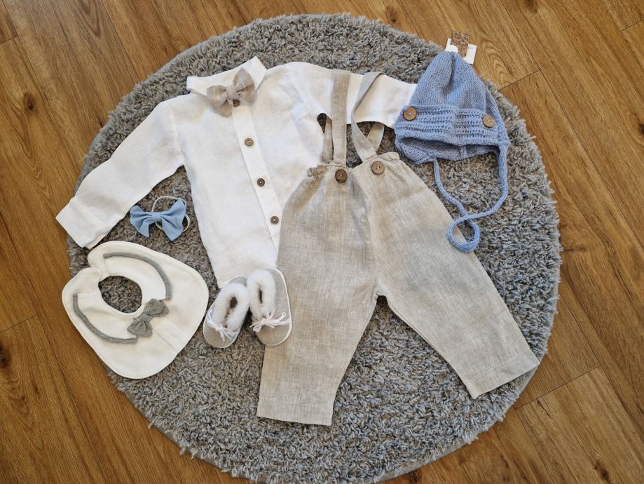 Prodamo enkrat nošen krstni komplet za fantka, velikost 74-80, izdelan po naročilu. Komplet vključuje: